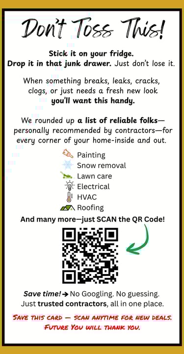 With thousands of postcards mailed each month and your exclusive digital offer page, homeowners see your business both offline and online. The bold, front-and-center QR Code bridges the gap between curiosity and action, making it easy for them to explore your offers and connect instantly.